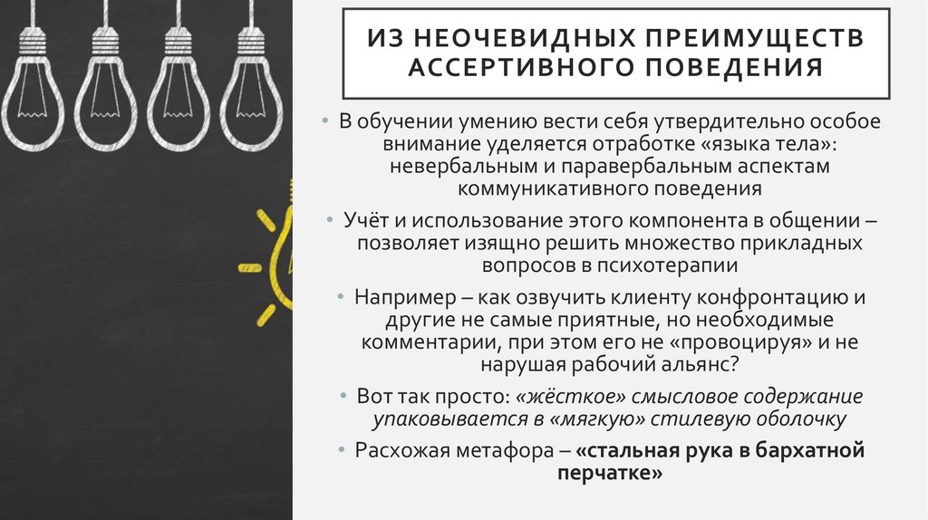 Сравните с «Тремя А» хирургии – Асептика, Антисептика и Анестезия. Для КБТ и