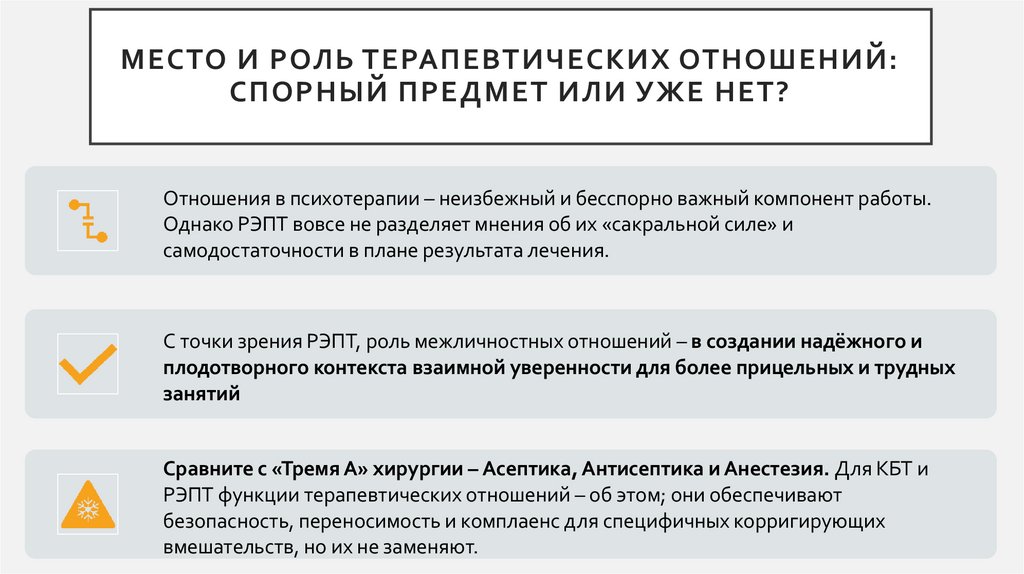 РЭПТ функции терапевтических отношений – об этом; они обеспечивают