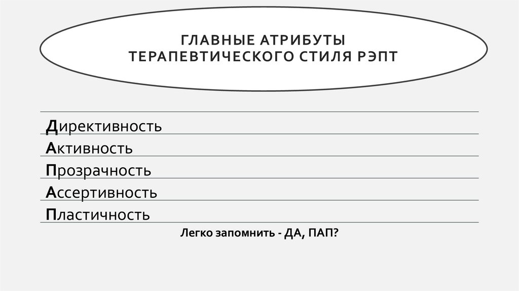 ГЛАВНЫЕ АТРИБУТЫТЕРАПЕВТИЧЕСКОГО СТИЛЯ РЭПТ