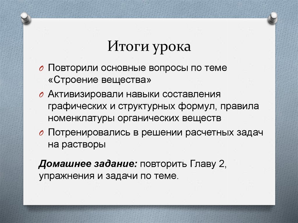 Строение веществаПовторение и обобщение темы