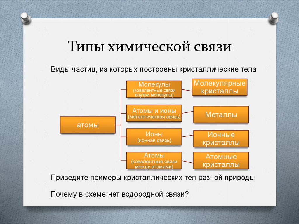 Типы химической связиВиды частиц, из которых построены кристаллические тела