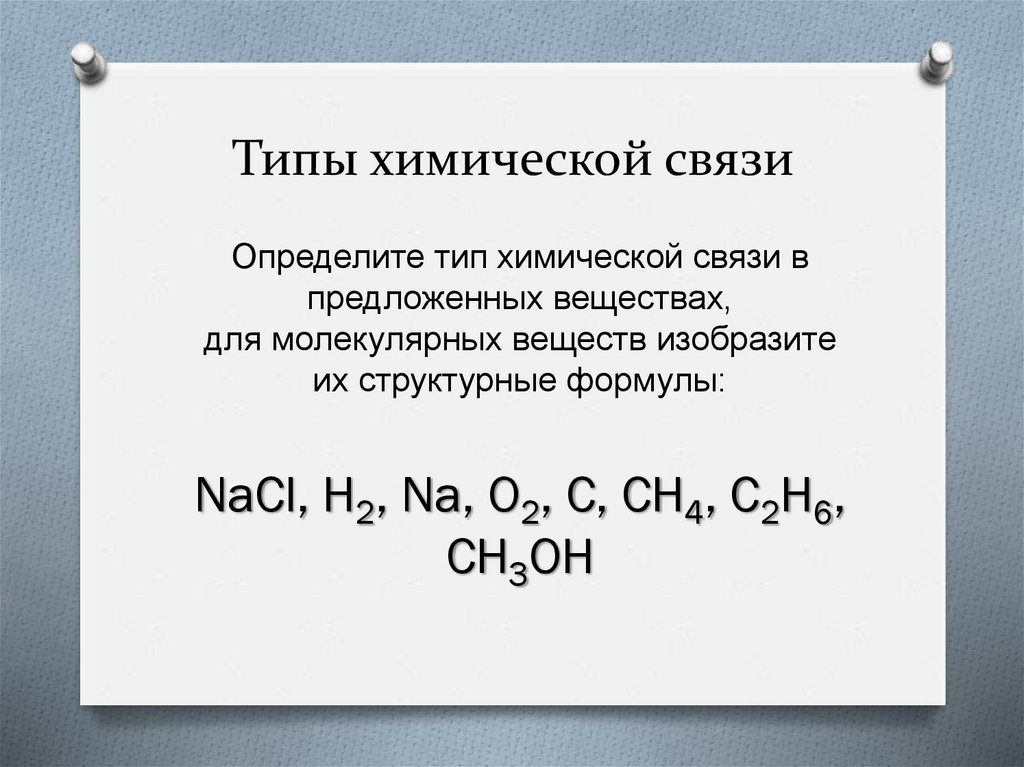 Типы химической связиОпределите тип химической связи в