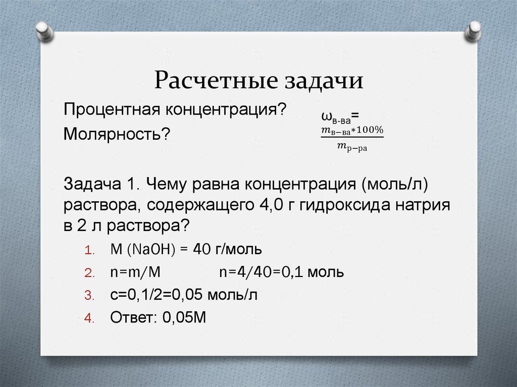 Расчетные задачиПроцентная концентрация?