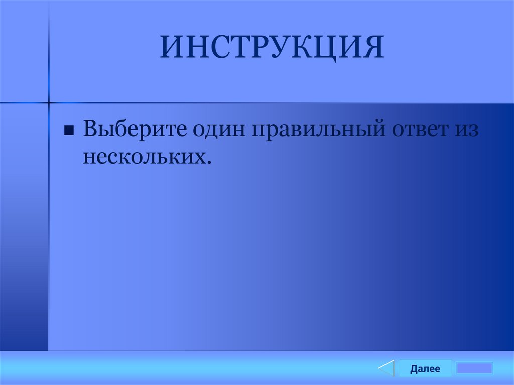 ИНСТРУКЦИЯВыберите один правильный ответ из