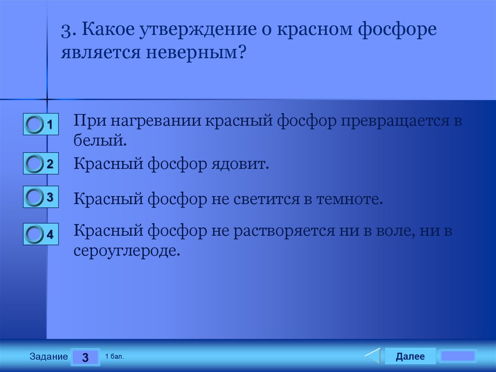 3. Какое утверждение о красном фосфореявляется неверным?