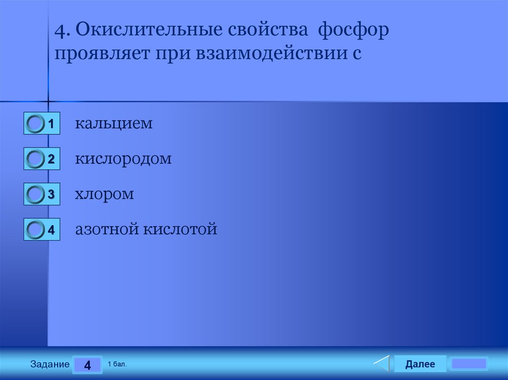 4. Окислительные свойства фосфорпроявляет при взаимодействии с