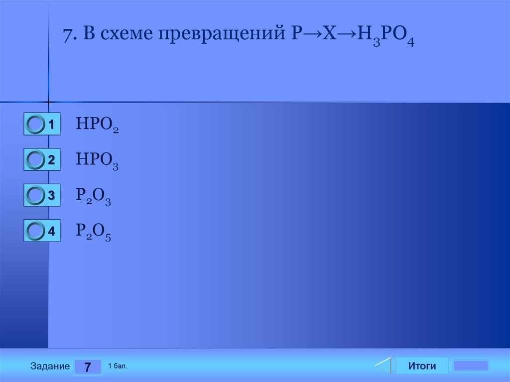 7. В схеме превращений P→X→H3PO41