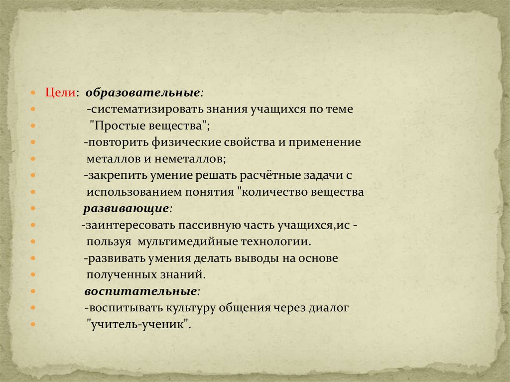 Цели: образовательные:-систематизировать знания учащихся по теме