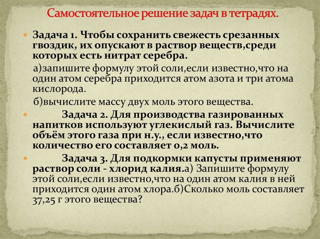 Задача 1. Чтобы сохранить свежесть срезанныхгвоздик, их опускают в раствор веществ,среди