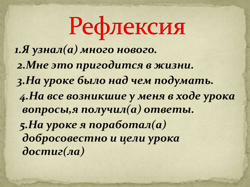 1.Я узнал(а) много нового.2.Мне это пригодится в жизни.
