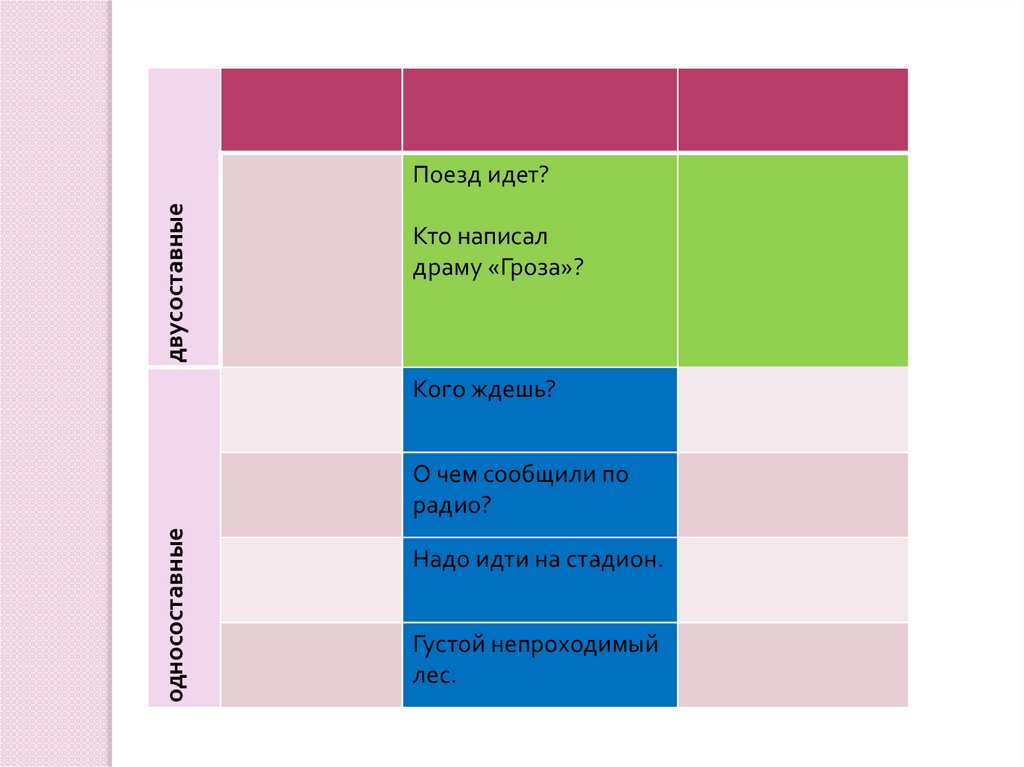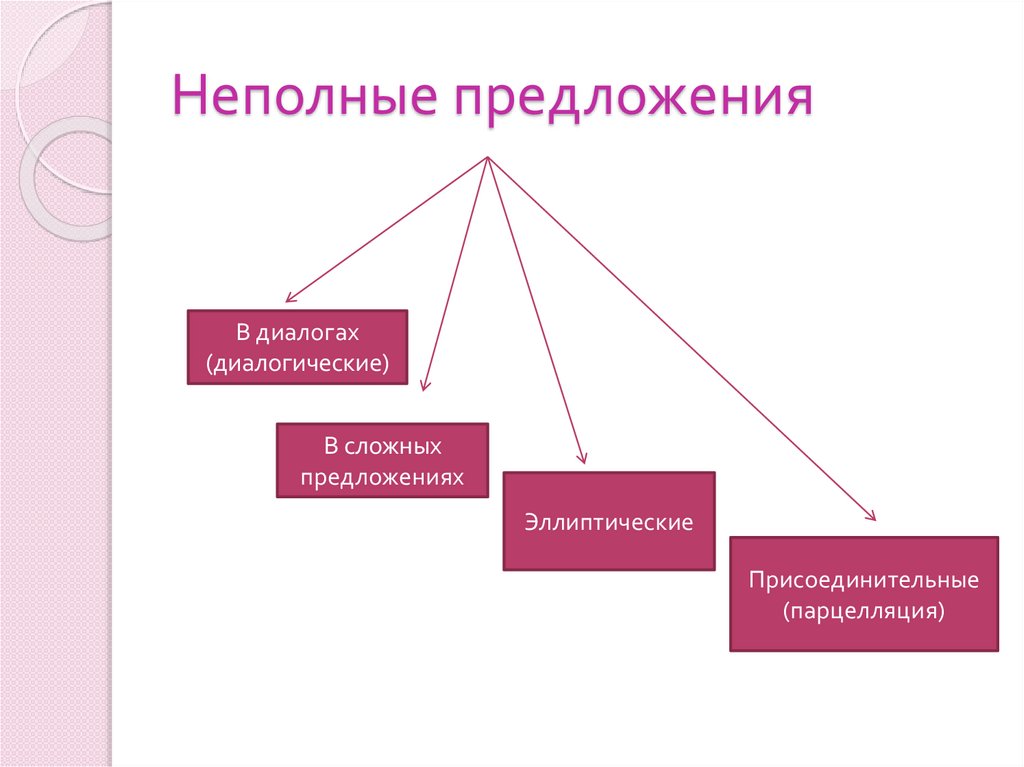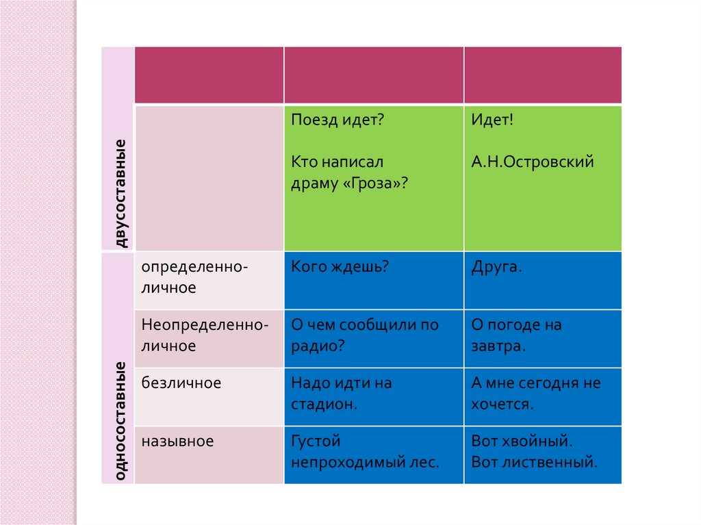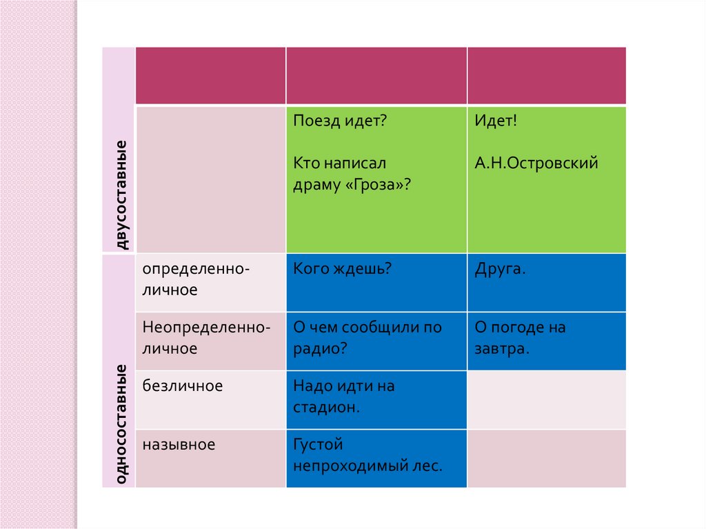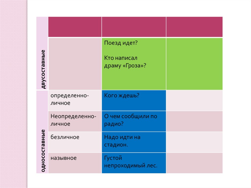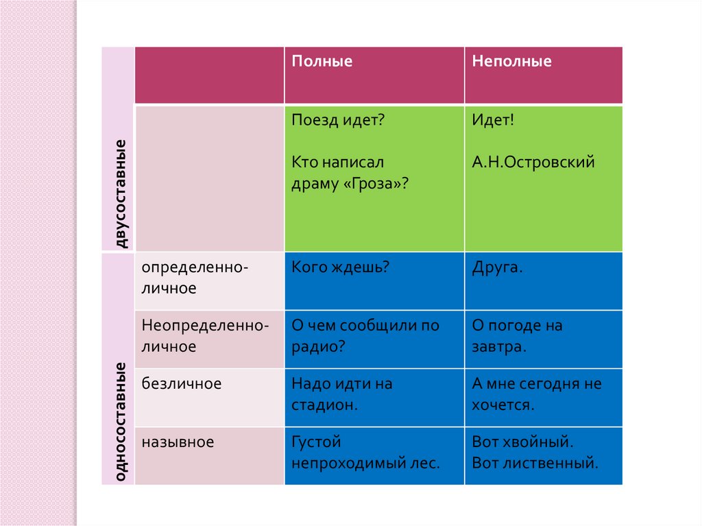 Неполные: двусост. и односост., распростр. и нераспростр.,