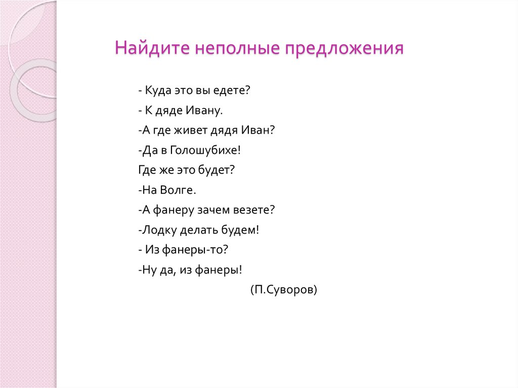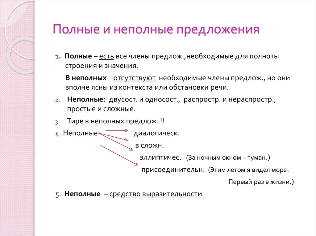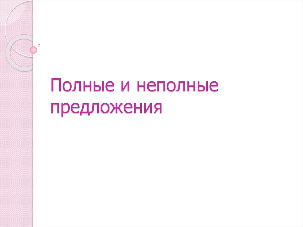 Полные и неполные предложения1. Полные – есть все члены предлож.,необходимые для полноты