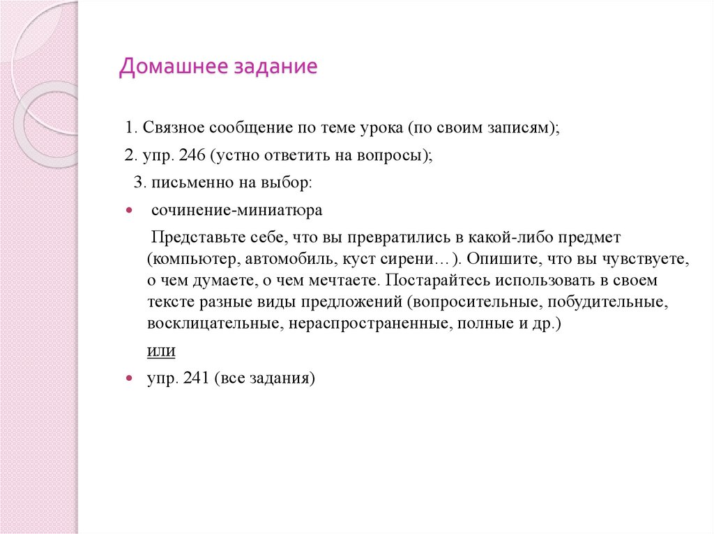 Домашнее задание1. Связное сообщение по теме урока (по своим записям);