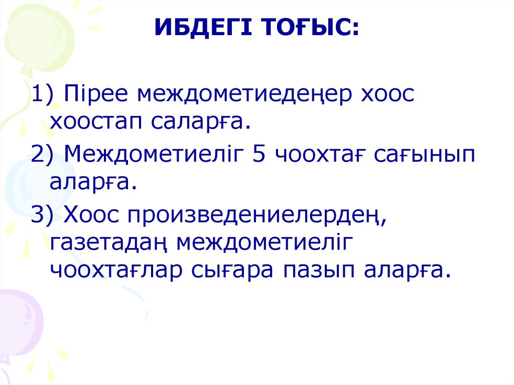 ИБДЕГI ТОҒЫС:1) Пiрее междометиедеңер хоос