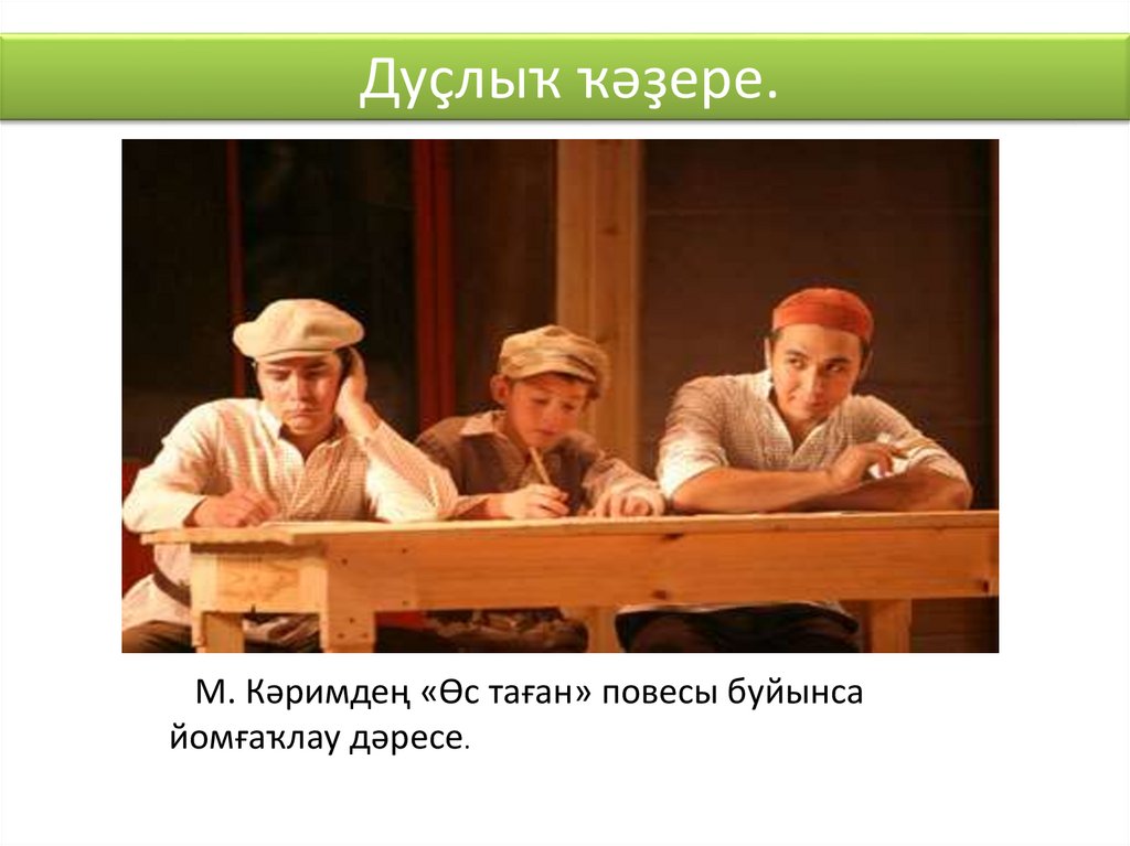 Дуҫлыҡ ҡәҙере. М. Кәримдең «Өс таған» повесы буйынса йомғаҡлау дәресе