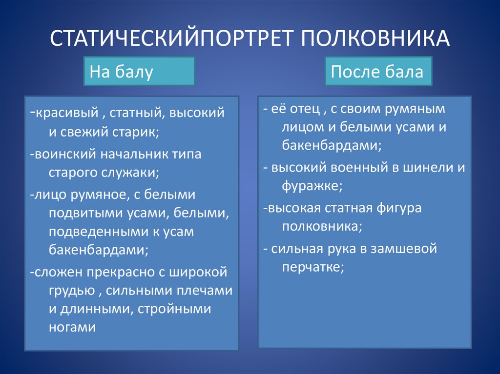 СТАТИЧЕСКИЙПОРТРЕТ ПОЛКОВНИКАНа балу