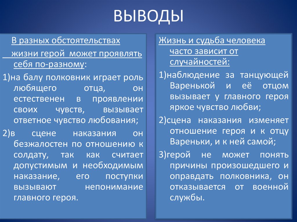 ВЫВОДЫВ разных обстоятельствах