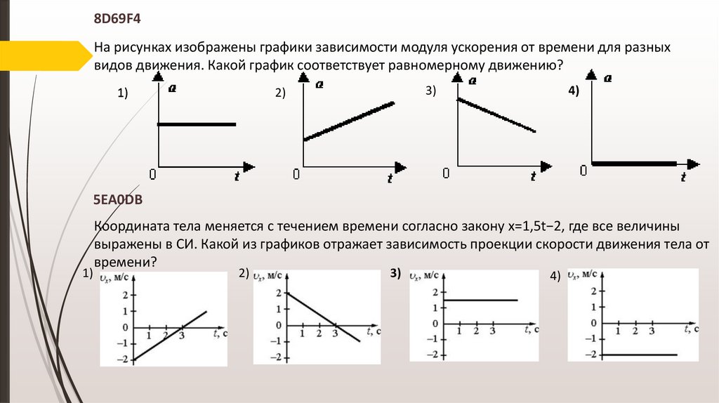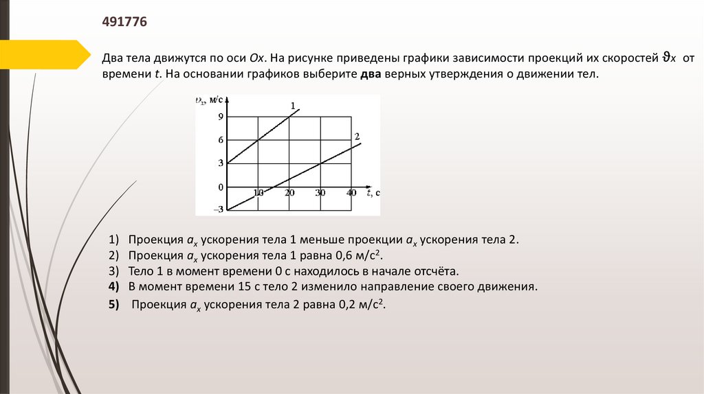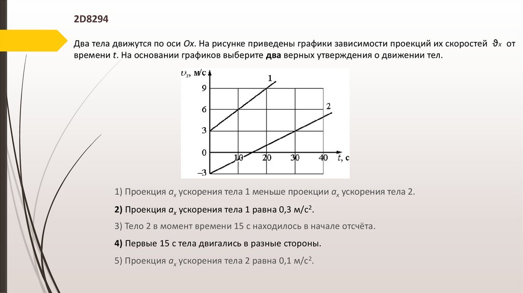Какое из тел движется с наименьшим по модулю ускорением?