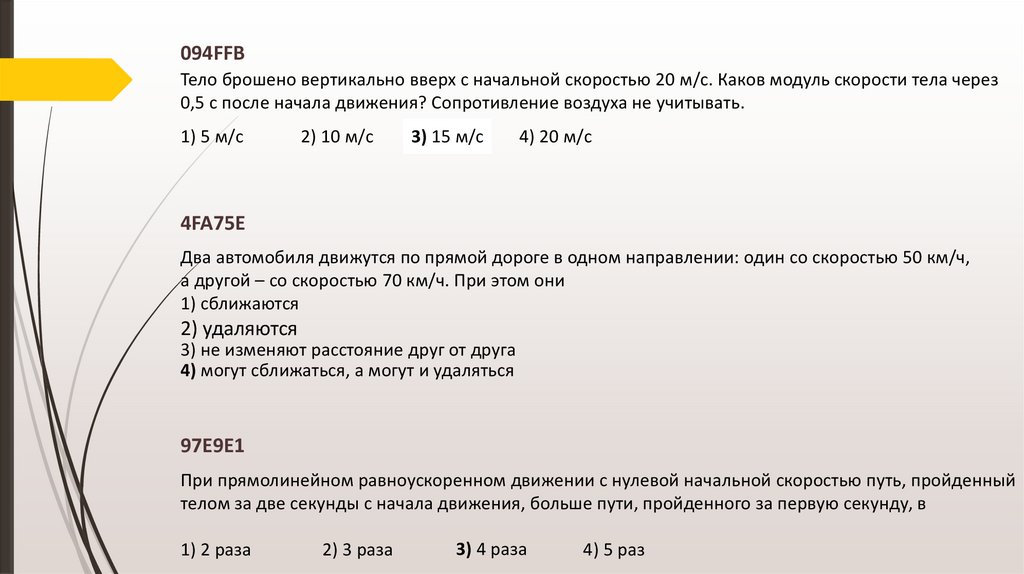 97BE00Четыре тела движутся вдоль оси Оx. На рисунке изображены