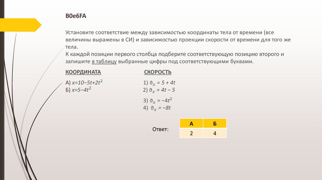 Какой из графиков соответствует зависимости от времени проекции ϑх скорости тела в