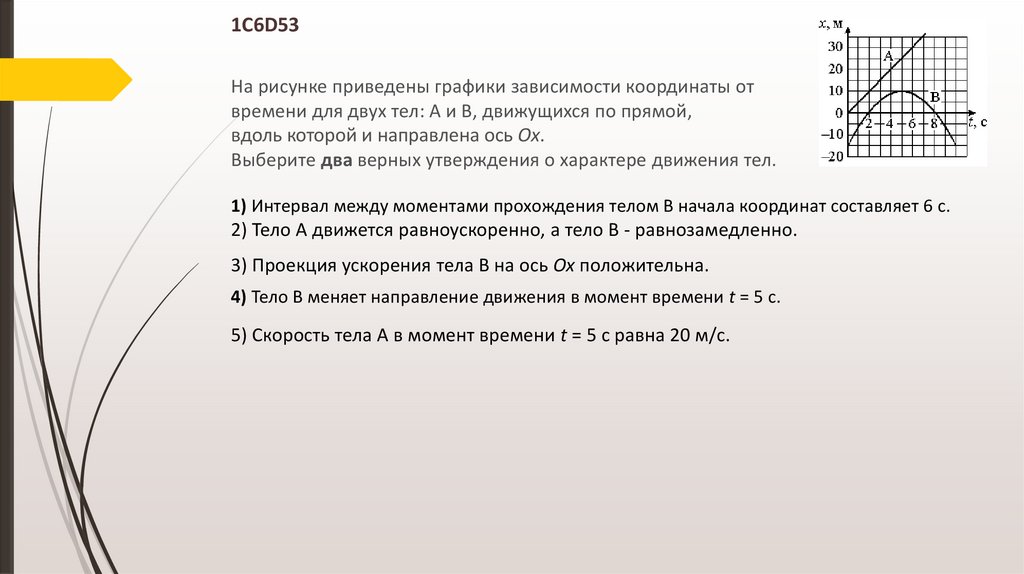 60D5DFНа рисунке приведён график зависимости координаты тела от времени при его прямолинейном