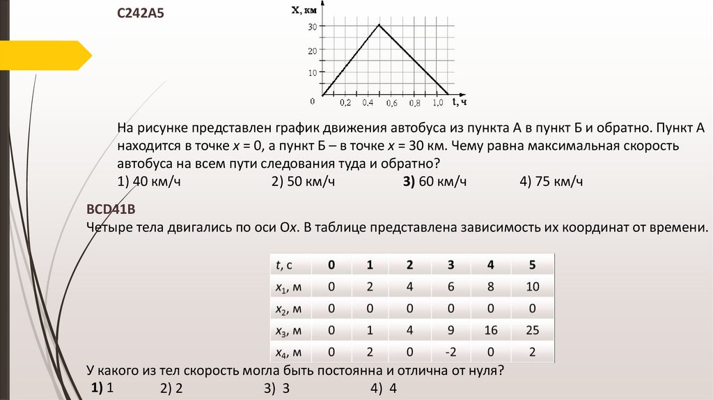 находится в точке х = 0, а пункт Б – в точке х = 30 км. Чему равна максимальная скорость