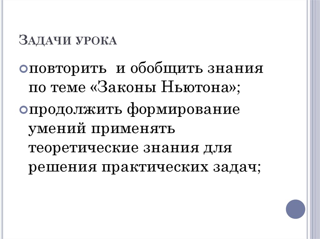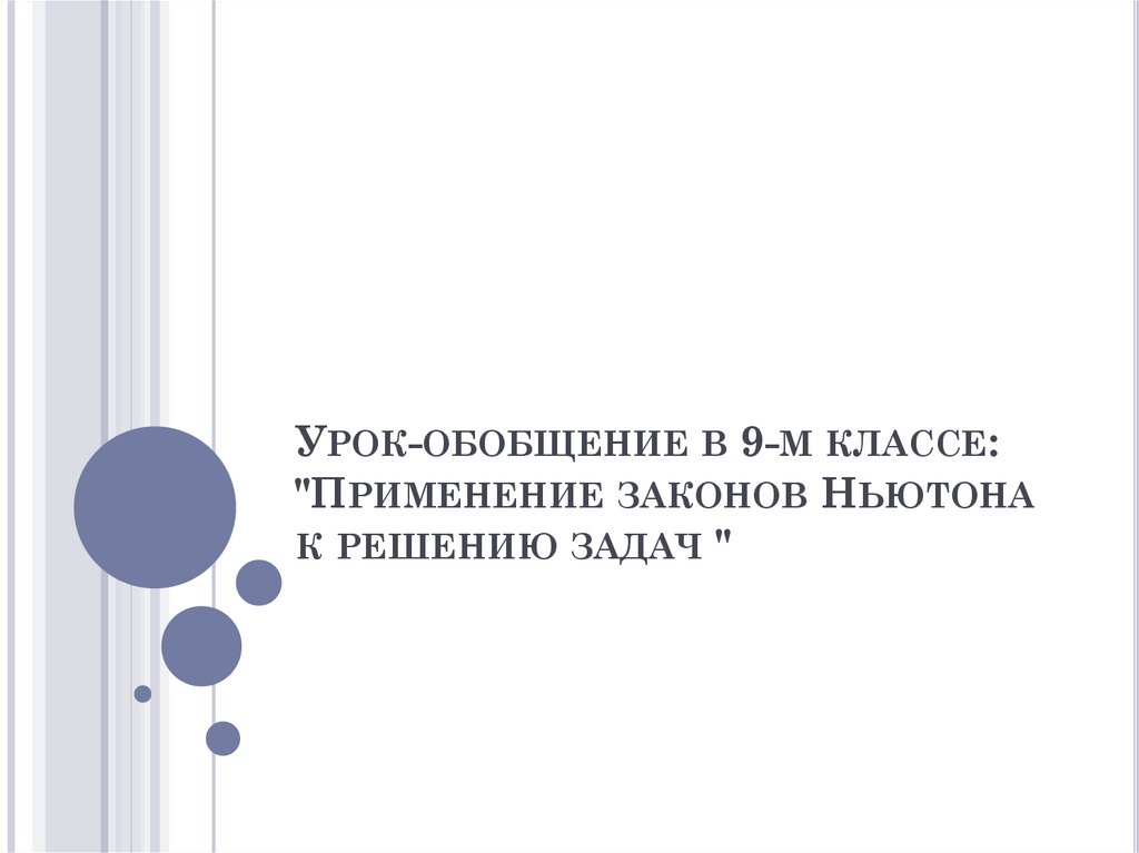 Урок-обобщение в 9-м классе: "применение законов ньютона к решению задач "
