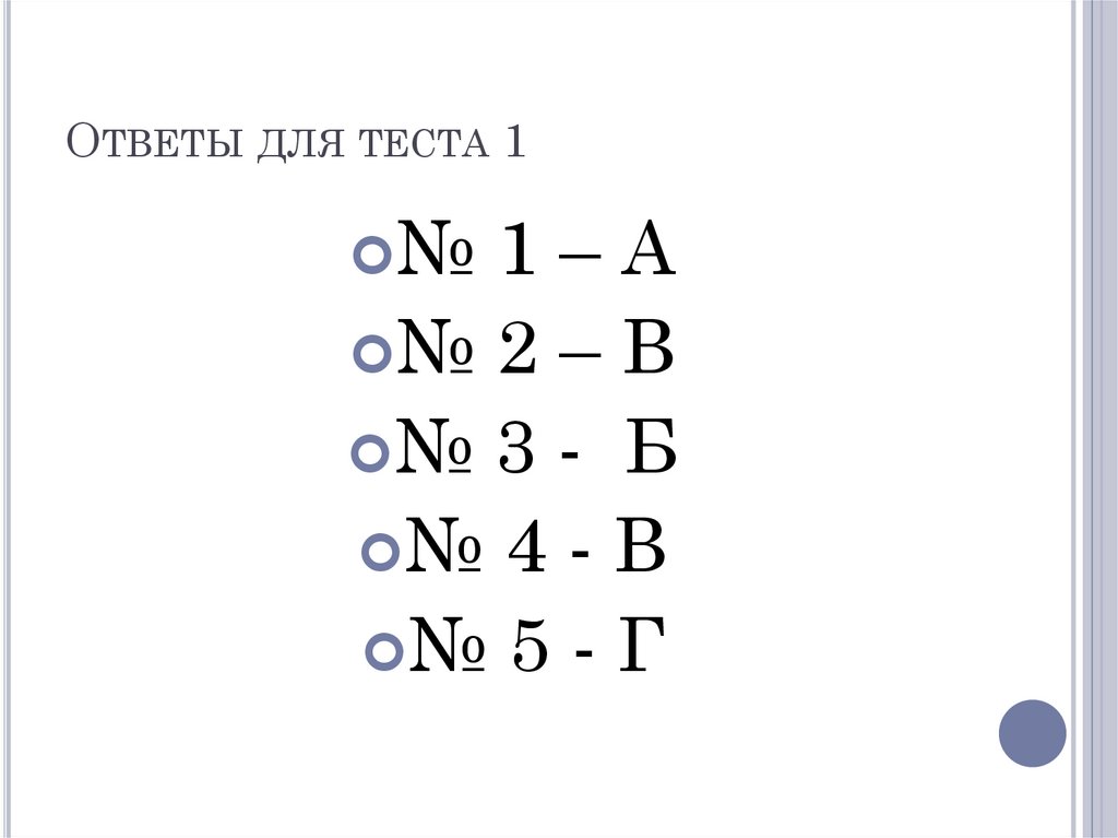 ОТВЕТЫ ДЛЯ ТЕСТА 1№