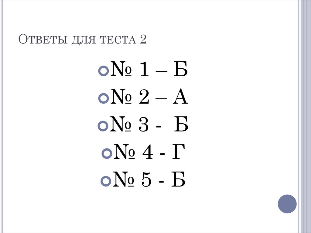 ОТВЕТЫ ДЛЯ ТЕСТА 2№