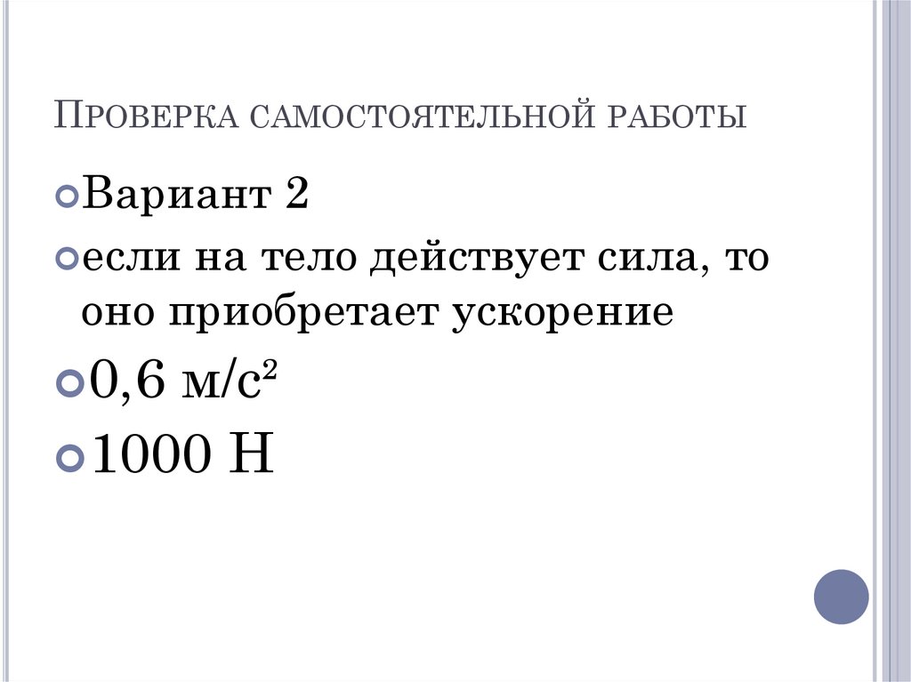 ПРОВЕРКА САМОСТОЯТЕЛЬНОЙ РАБОТЫВариант