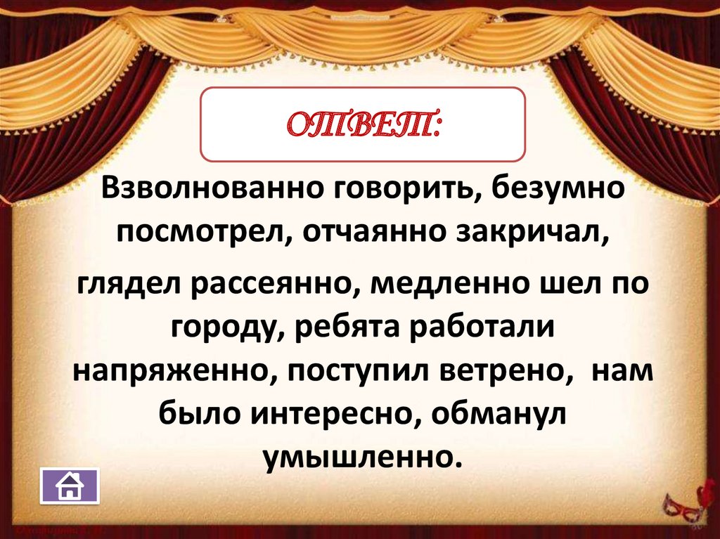 ОТВЕТ:Взволнованно говорить, безумно