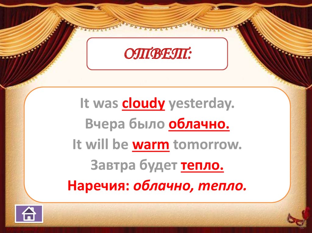 ОТВЕТ:It was cloudy yesterday.