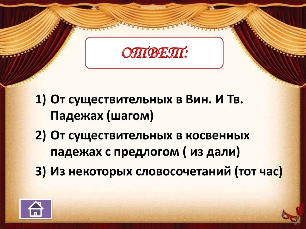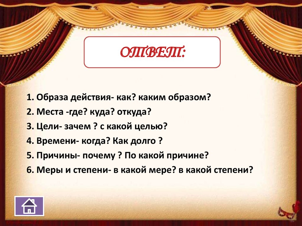 ОТВЕТ:1. Образа действия- как? каким образом?