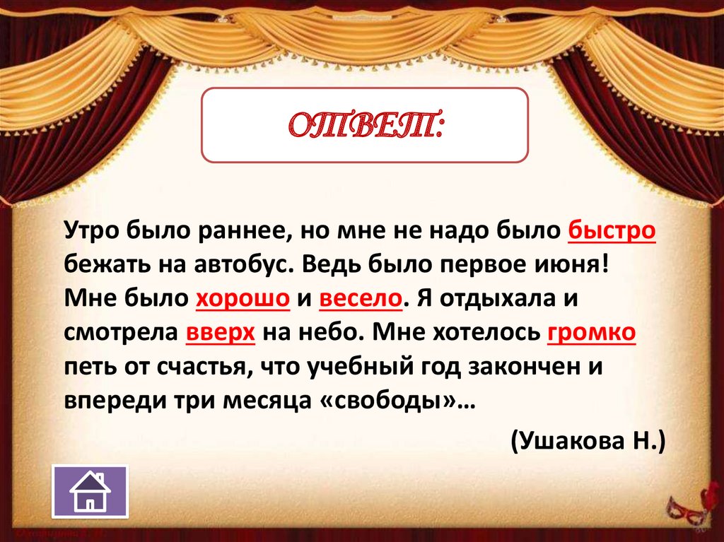 ОТВЕТ:Утро было раннее, но мне не надо было быстро