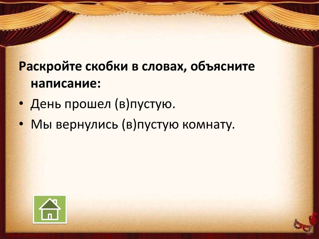 • Мы вернулись (в)пустую комнату.