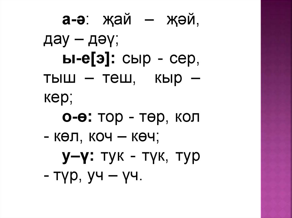 авазларының үзләреннән соңгы иҗектәге [ы], [э]