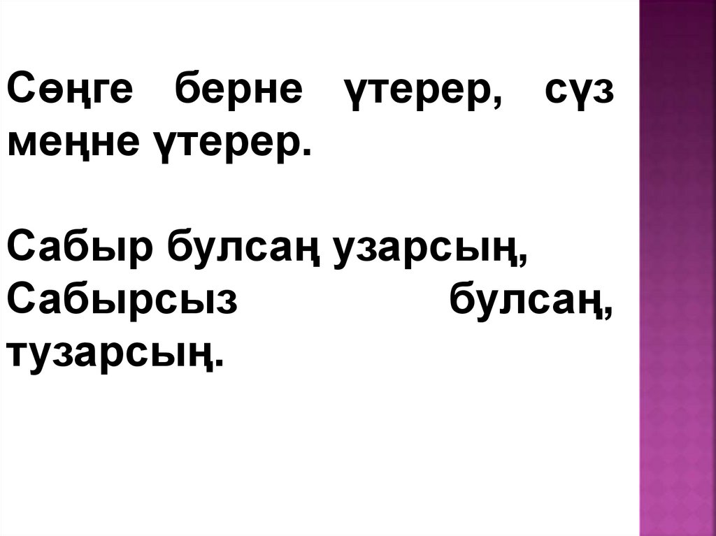 1. Бер байлык бар – янмый, карак таурлый алмый, төшеп тә югалмый.