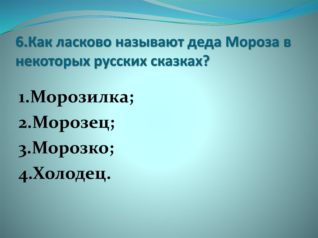 6.Как ласково называют деда Мороза внекоторых русских сказках?