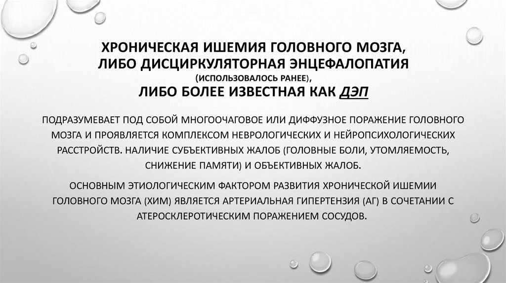 ХРОНИЧЕСКАЯ ИШЕМИЯ ГОЛОВНОГО МОЗГА,ЛИБО ДИСЦИРКУЛЯТОРНАЯ ЭНЦЕФАЛОПАТИЯ