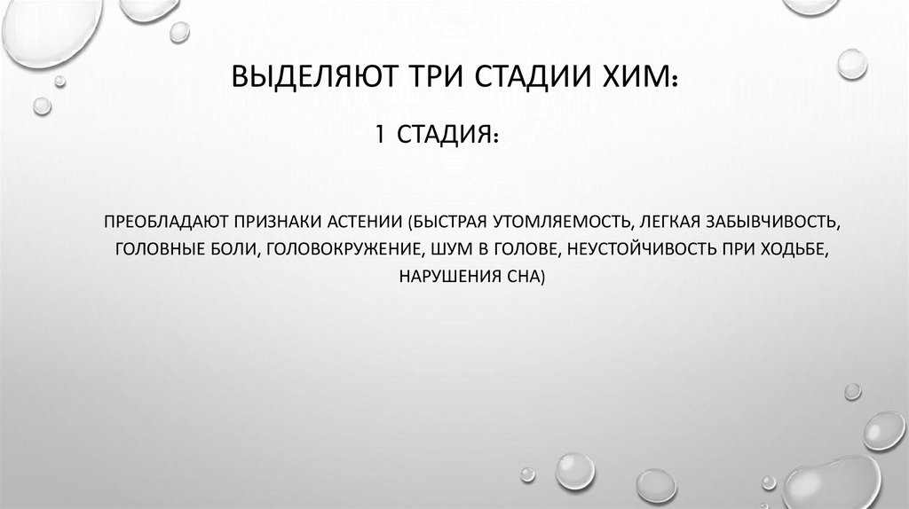 ВЫДЕЛЯЮТ ТРИ СТАДИИ ХИМ:1 СТАДИЯ: