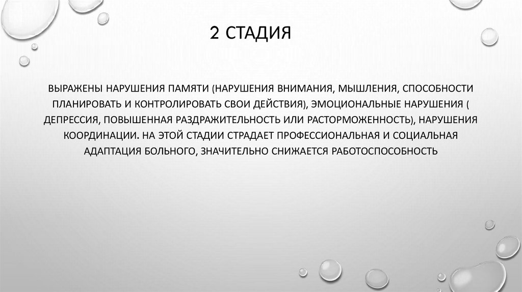 2 СТАДИЯВЫРАЖЕНЫ НАРУШЕНИЯ ПАМЯТИ (НАРУШЕНИЯ ВНИМАНИЯ, МЫШЛЕНИЯ, СПОСОБНОСТИ