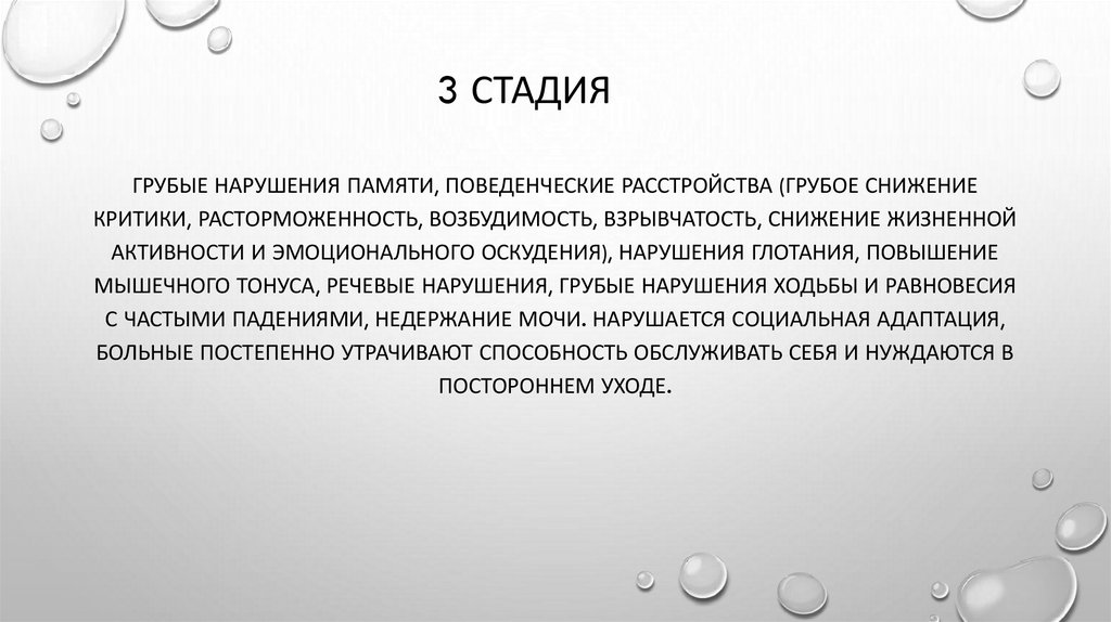 3 СТАДИЯГРУБЫЕ НАРУШЕНИЯ ПАМЯТИ, ПОВЕДЕНЧЕСКИЕ РАССТРОЙСТВА (ГРУБОЕ СНИЖЕНИЕ