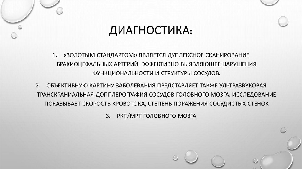 ДИАГНОСТИКА:1. «ЗОЛОТЫМ СТАНДАРТОМ» ЯВЛЯЕТСЯ ДУПЛЕКСНОЕ СКАНИРОВАНИЕ