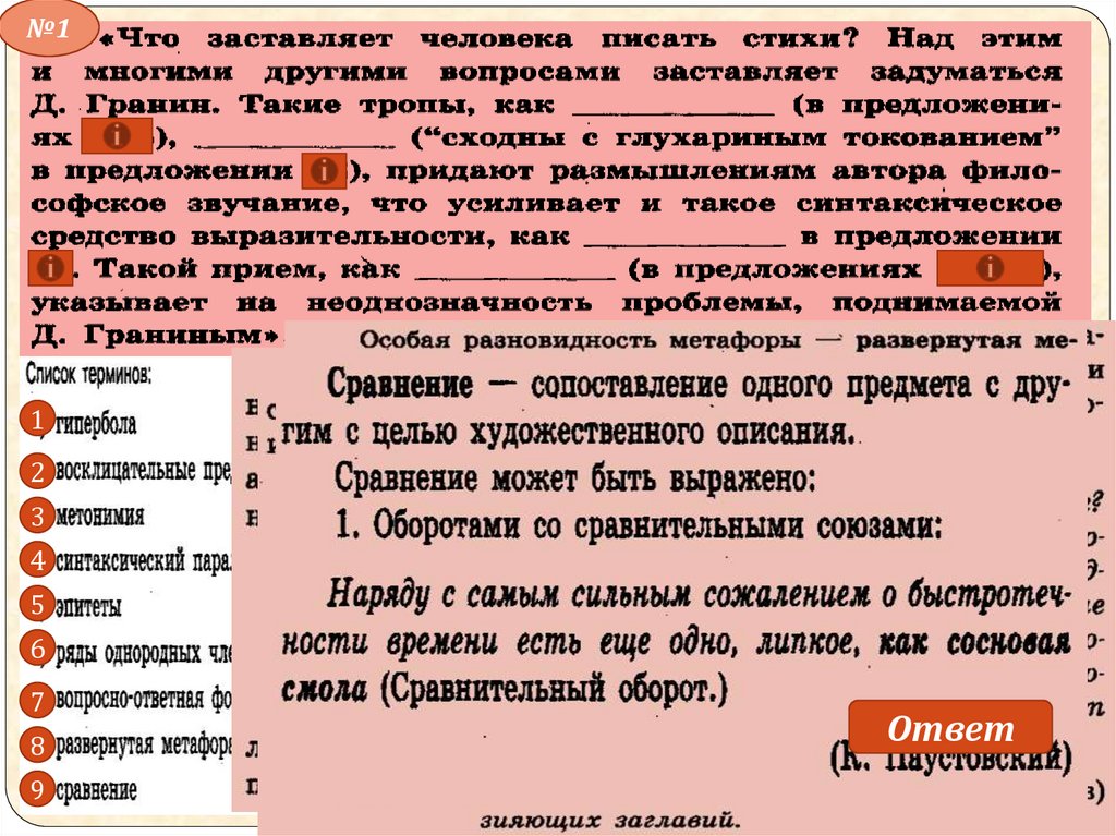 Готовимся к ЕГЭ. В8. Средства художественной изобразительности