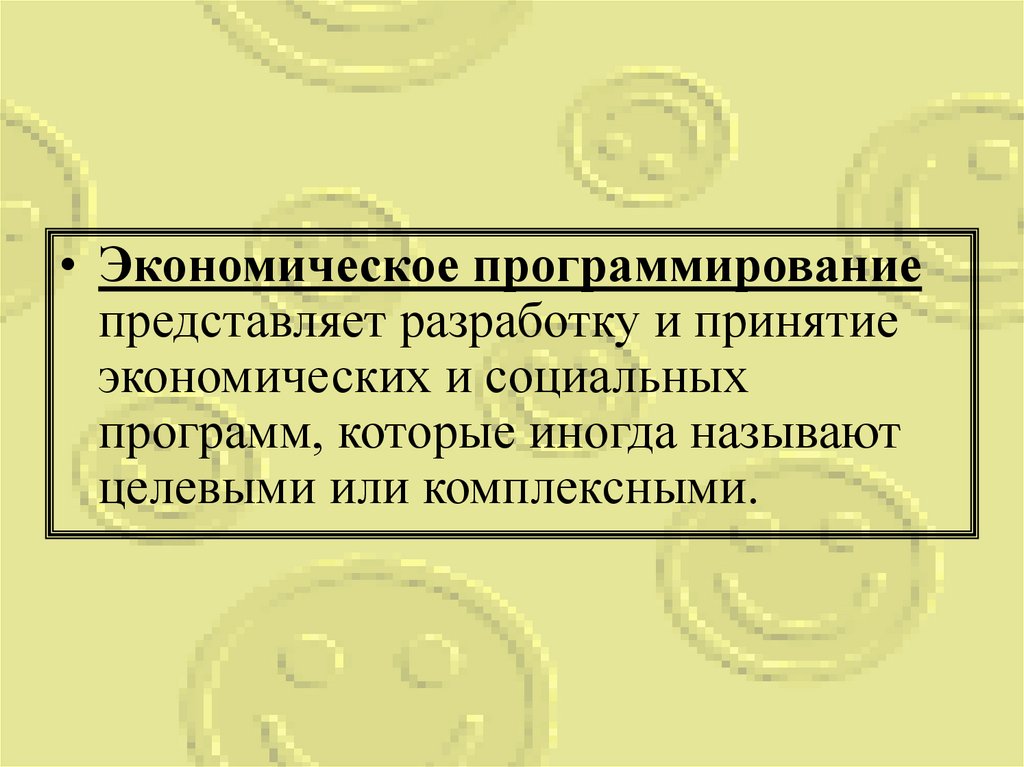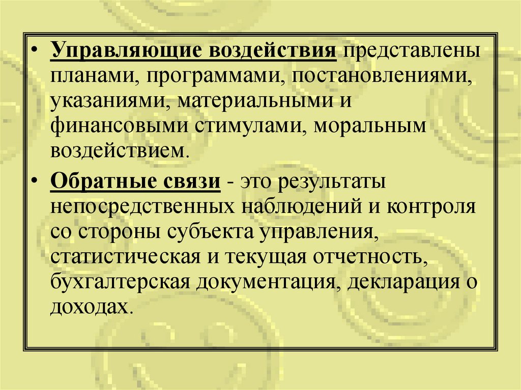 • Управляющие воздействия представленыпланами, программами, постановлениями,