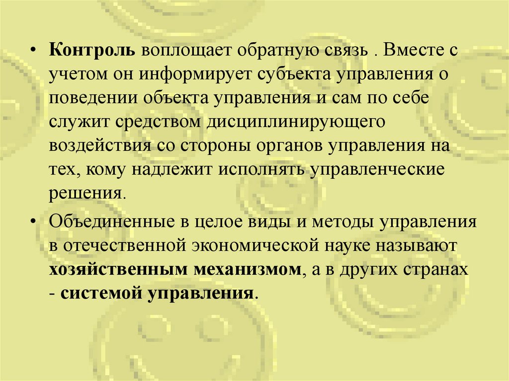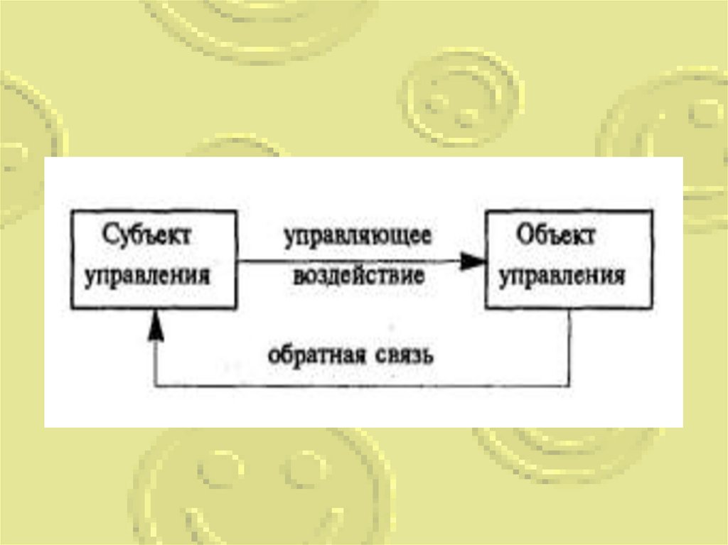 • Контроль воплощает обратную связь . Вместе сучетом он информирует субъекта управления о