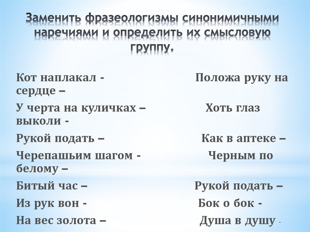 Кот наплакал сердце –У черта на куличках –