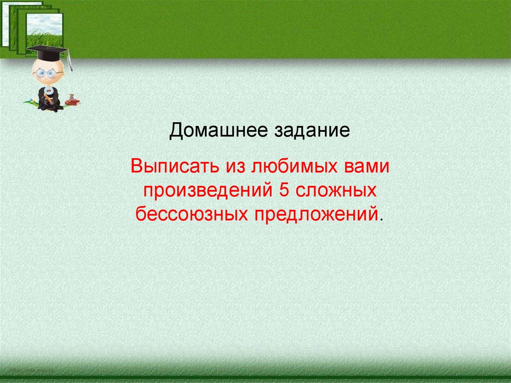 Домашнее заданиеВыписать из любимых вами