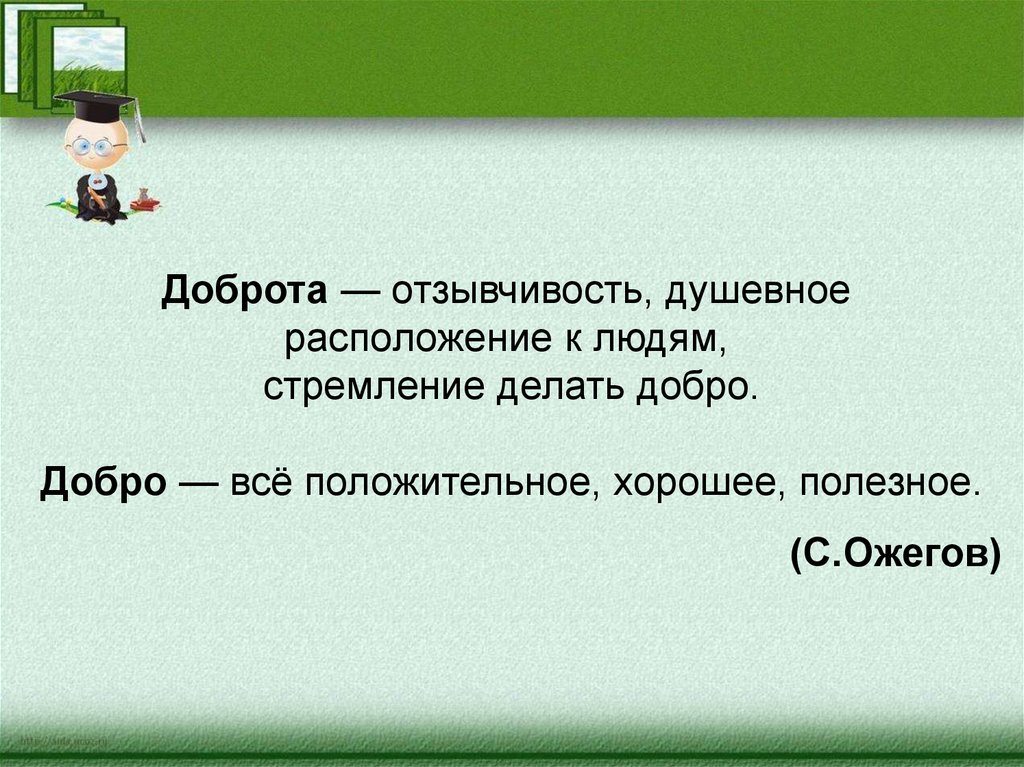 Доброта — отзывчивость, душевноерасположение к людям,