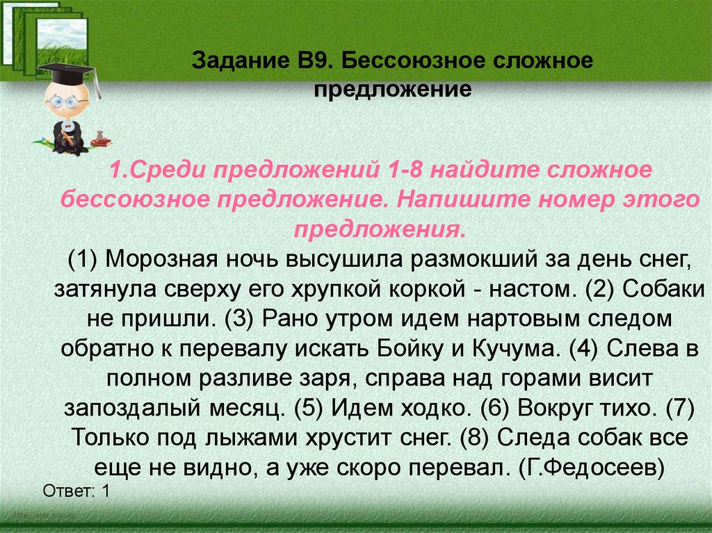 Задание В9. Бессоюзное сложноепредложение